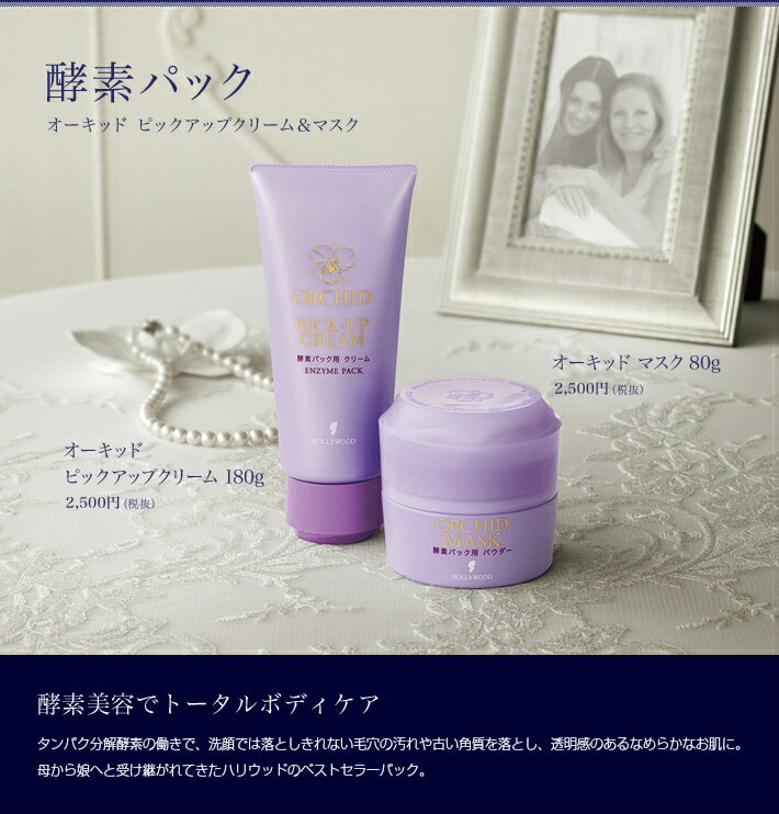 ロングセラー商品「酵素パック」専用のパウダー状パック、ハリウッド化粧品オーキッドマスクです。
