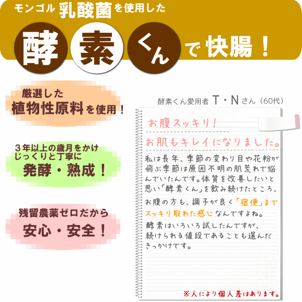 5g×30包 -------------------------------------------------70種類以上の果実類、キノコ類、野菜・根菜類などを 厳選し、微生物にとって最良の環境をつくり上げ、自然の力で 3年以上熟成発酵させました。